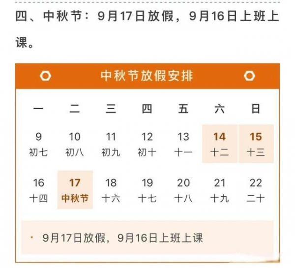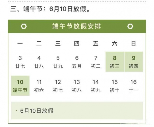 此外清明节、端午节、中秋节各放1天,劳动节放三天,均不调休。