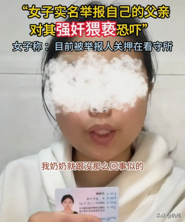 女子手持身份证在镜头面前声泪俱下地控诉父亲种种罪状: