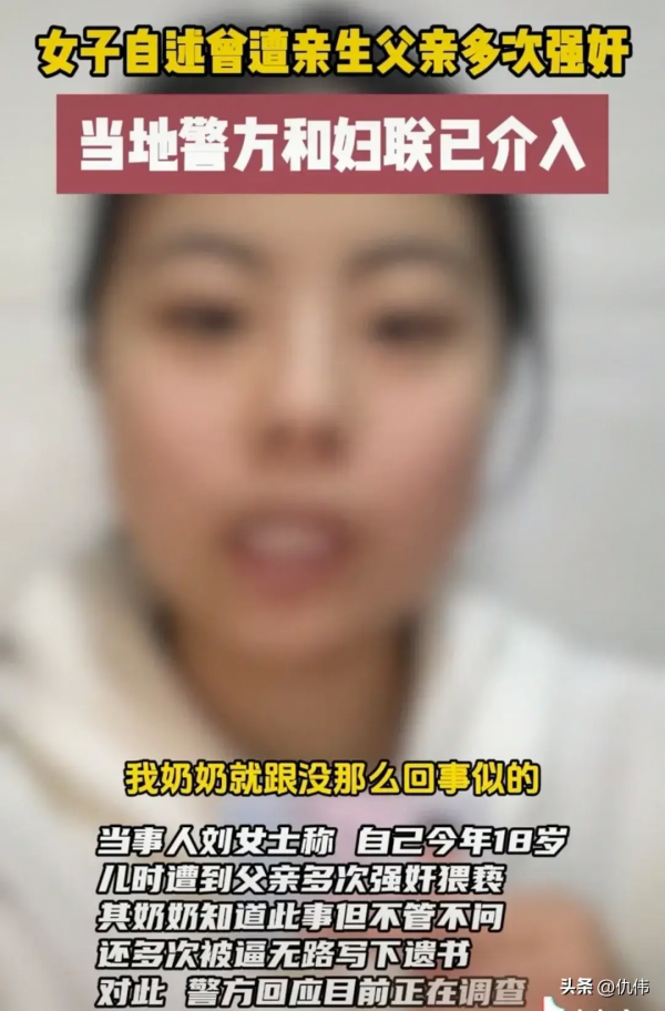 近日,内蒙古赤峰一年轻女子自述遭亲生父亲性侵和猥亵多年,奶奶对此事不管不顾。