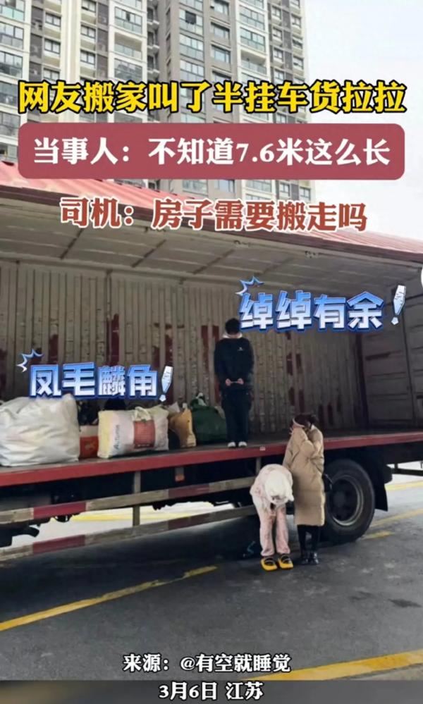 这出意外的搬家经历让人忍俊不禁。300元叫来一辆7.6米的大货车,不仅让女子和闺蜜笑出了猪叫,也让我们见识到了货拉拉服务的丰富多样性。搬家虽有波折,但生活中的小插曲也让人回味无穷。