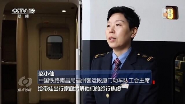 中国铁路南昌局福州客运段厦门动车队工会主席 赵小仙:"遛娃舱"设置的初衷就是缓解带娃家庭的焦虑,让孩子的天性在旅途中得到释放。同时也可以提升全车旅客的乘车体验。