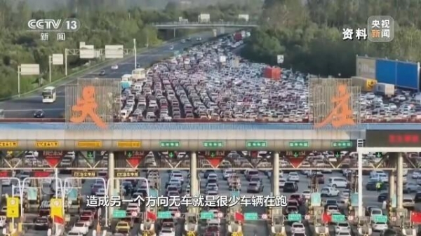 安徽交控集团皖通公司运营部部长 吴峻:一方的流量大概是另一方流量的7倍左右,明显造成一个方向流量严重拥堵,另一个方向很少车辆在跑。