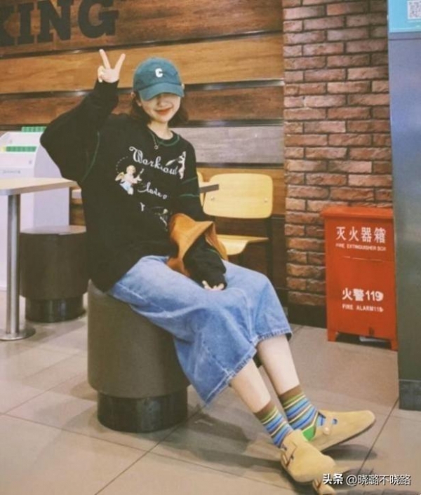 或者是选择异色调的袜子,比如彩虹色的短袜,这样可以让整体造型更加有层次感,同时达到吸睛的效果,更加突显穿搭的精致度。即使是再基础的穿搭,因为有彩色袜子的点缀,同样可以吸引视线向下延伸,为整体造型增添趣味和个性。