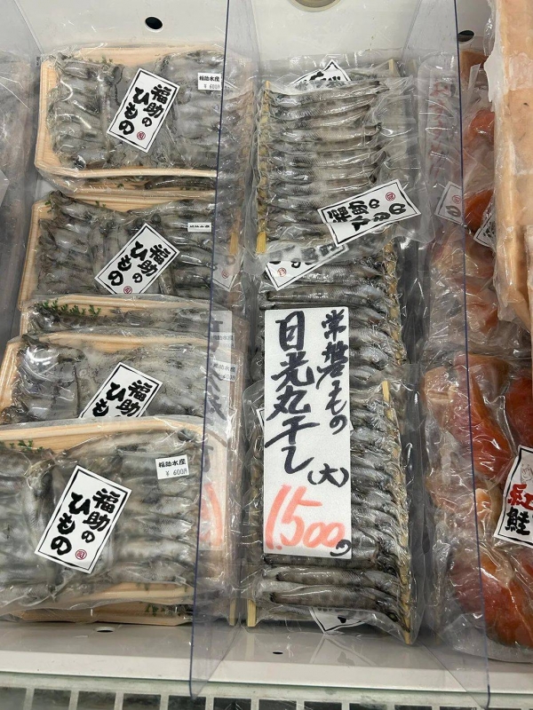 早上八点,渔民在岸边整理渔网,和小名浜渔港隔了一条马路的海鲜市场开始营业了,占了两间门面的福助水产店正在卸货,见到顾客后大塚放下手中的活迎上来热情介绍,这里的海域是日本暖流与千岛寒流交汇的地方,鱼的肉质特别,"当地的招牌是名为 '目光'的鱼,鱼籽很多,连骨头都很软嫩……"