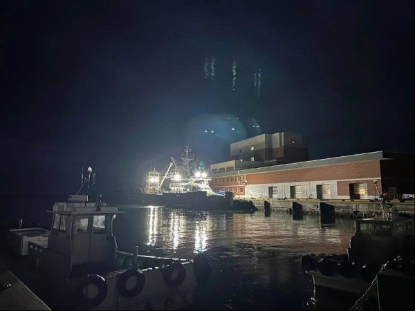 凌晨4点,天色和午夜一般黑,停靠在福岛县小名浜渔港的一艘大型渔船突然打开了六台探照灯,光束扫亮了岸边的一排小渔船,发动机的低鸣声交错,船陆续出港,向黑暗深处驶去。松原父子开着小皮卡到晚了一些,上船后麻利地整理渔网和水箱,在天边透出点光的时候,"大德丸"出海了。