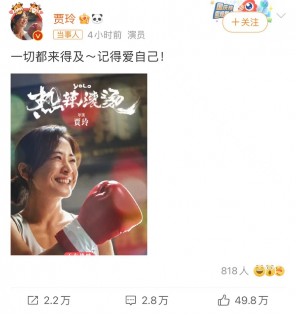 今天,她发布了一条微博,文案很简单"一切都来得及~记得爱自己",可就是这短短十几个字,仿佛有万钧之力,让无数观众动容,也想要像戏里戏外的贾玲导演一样,拼尽全力赢一次,贾玲导演树立的榜样的力量真的无法言喻,太太太强大了!