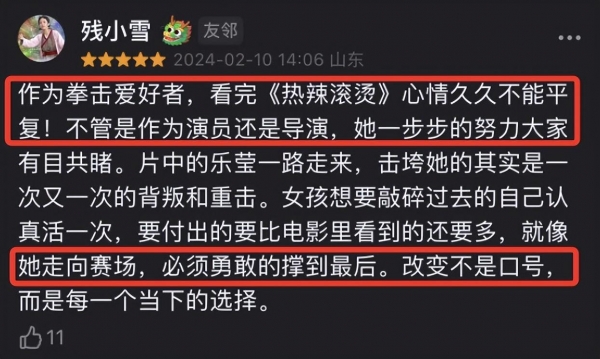 再打开豆瓣,看到的也都是各位友邻们对贾玲导演和《热辣滚烫》赤裸裸的点赞和夸奖,满是掩饰不住的热爱。