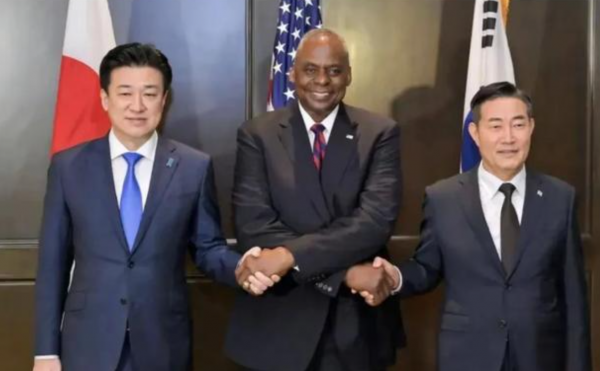 随后,据日本《产经新闻》报道,美日韩已经敲定,将在今年夏季举行名为"自由之刃"的跨海、空和网络空间的联合训练,期间三方还将进行"兵棋推演",针对"朝鲜半岛和印太地区"商讨有效措施。