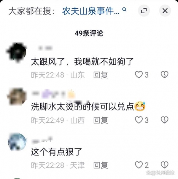 有网友开直播,直播内容不是别的,而是往马桶倒农夫山泉。还有网友发小视频,配文"水倒了,瓶子没人收。"