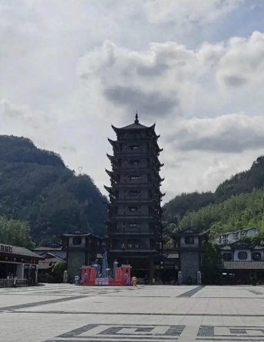 5月3日,上游新闻以"张家界标志性仿古建筑'开花'引热议,景区回应:将及时反馈"为题,对张家界武陵源景区东门的标志性仿古建筑九层塔上挂着8朵硕大的气膜"花朵"进行了报道。5月6日,小红书网友发帖称:"九层塔上的花花没有了。"