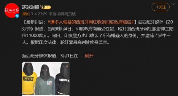 眼见事情闹大,印度怕影响自己的旅游业,就逮捕了3名罪犯,并向受害者赔偿11000欧元(约8.63万人民币)。