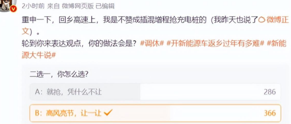 更令人咋舌的是,充电站成为了供不应求的"香饽饽"。车主们在服务区排队充电,时间比实际开车的时间还长。为了争抢充电桩,新能源车主与混动车主发生争执,成了一出"电充大战"。这让我想到了电影中为了生存资源而争夺的场面,只是这次换成了电动车主和混动车主的"生存之争"。