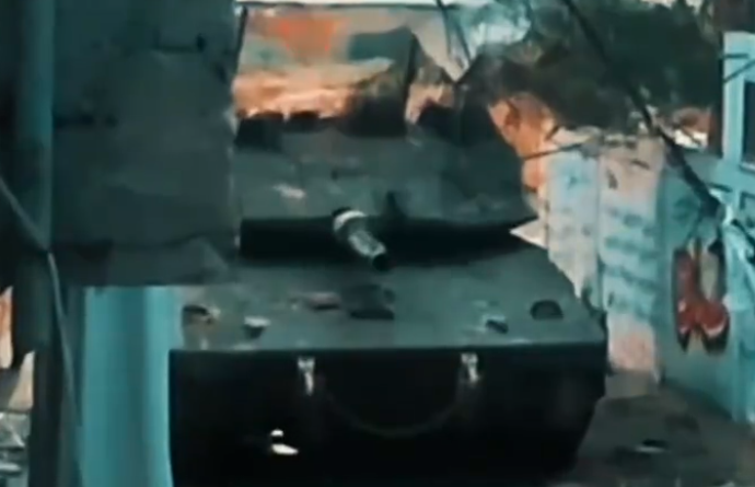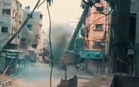 视频中可以看到,士兵小心翼翼地在大树的掩护下,悄悄接近装甲车,并成功地发射了一枚"亚辛-105"串联火箭弹,导致以军的装甲车瞬间起火爆炸,车内以军士兵无一幸免。