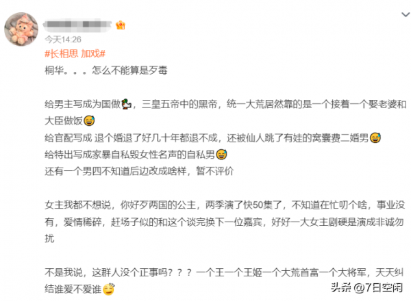 《长相思》第二季开播后,导演秦榛和编剧桐华的个人账号评论区沦陷,网友纷纷提出质疑。主要问题集中在两点:一是女主小夭成了工具人,二是主创过于"爱男",大女主戏变成了男性角色的独角戏。
