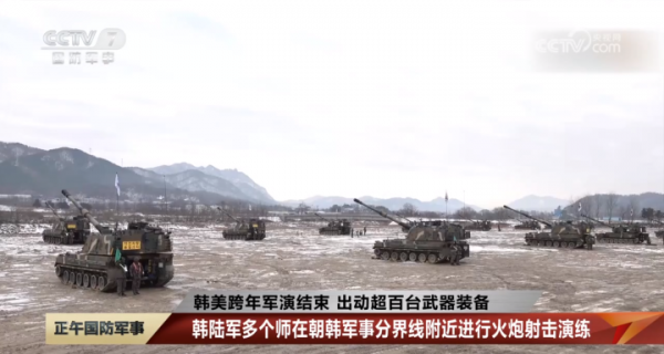 据央视报道,1月4日,韩国国防部宣布为期7天的韩美跨年联合演习结束。在位于朝韩军事分界线附近的京畿道抱川市,韩美两军出动了包括主战坦克、装甲车、轮式步兵战车,以及装甲架桥车、装甲推土机等在内的110台武器装备。朝中社4号刊文对韩方行为予以严厉批评,表示尹锡悦政府2023年不断发起军事挑衅,2024年刚开始就继续做出挑衅决策,接下来可能以空前的规模发起各种战争阴谋,因此今年是朝韩最有可能发生冲突的一年。朝鲜劳动新闻也发表评论,指责韩方"推高战争氛围"。