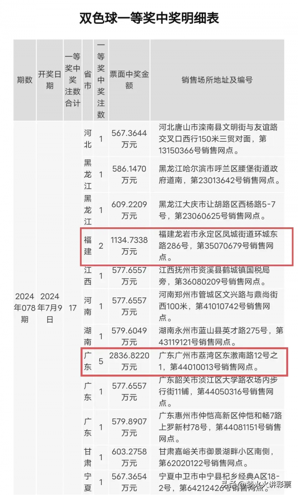 而且,这也已经是广东连续两期都有一人独中5注双色球一等奖的盛况出现了!上期双色球第24078期开奖,广东广州市荔湾区彩民也是一人独中5注一等奖,共计获得奖金2836万元。