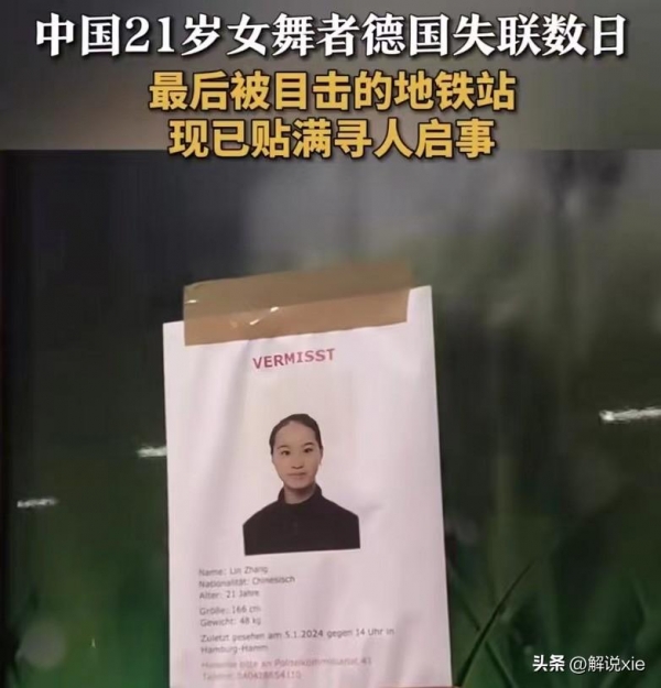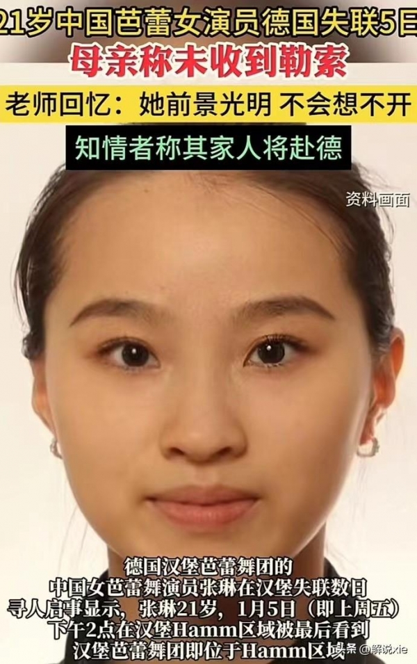 同时,德国汉堡芭蕾舞团的团员们也在舞团周边、张琳住处、上下班沿途等地方贴出了寻人启事。