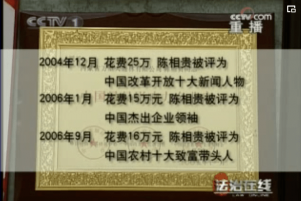 在调查组看来,陈相贵的这些荣誉含金量等于零,而对于投资他的人来说,这些荣誉证书,实际上起到了障眼法的作用。