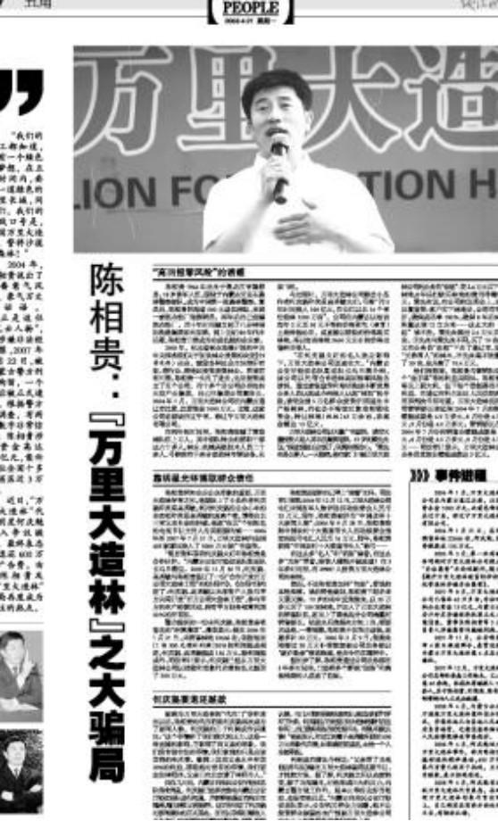 总之在品尝到名人效应带来的甜头之后,陈相贵和他的万里大造林公司便一发不可收拾,他挖空心思让自己成为更大的名人。