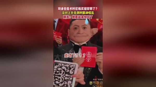 央视春晚魔术演员刘谦在表演《守岁共此时》时,因为搭档尼格买提"穿帮",其他人都展示了对齐的扑克牌,只有尼格买提牌没对上,这一相关信息迅速冲上了热搜。