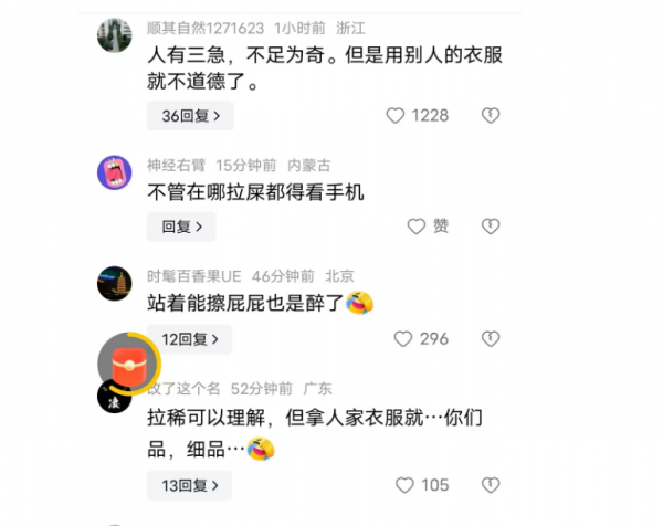 "人有三急不足为奇,但用别人衣服就很不道德了!"