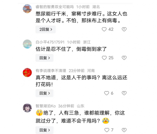 当然,也有少数网友持不同意见,觉得这也没什么可大惊小怪的,可以理解,可能实在是憋不住了,建议不要放大此事,应该有同情心,原谅她。