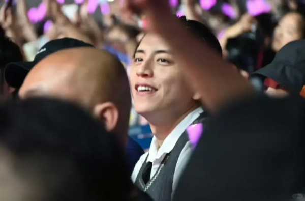 别看年纪不小了,但李明启老师精神状态相当好,全程目不转睛的盯着苏有朋的表演,看到兴奋时,还跟着人群大喊,全然一副小粉丝的状态。