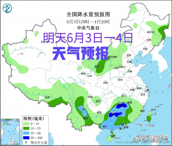 "台风离去留清景,古意新词写画扉"。台风刚走, 南方新一轮强降雨再次来袭!大雨暴雨分布如下,6月 3-4日天气预报。