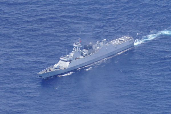 (在我南沙群岛仁爱礁与仙宾礁水域附近巡弋的056A轻型护卫舰"铜陵"舰)