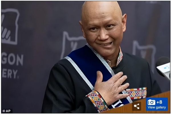 他在新闻发布会上系着腰带,自称是尤敏(Iu Mien)族,这是一个起源于中国南方的东南亚民族。
