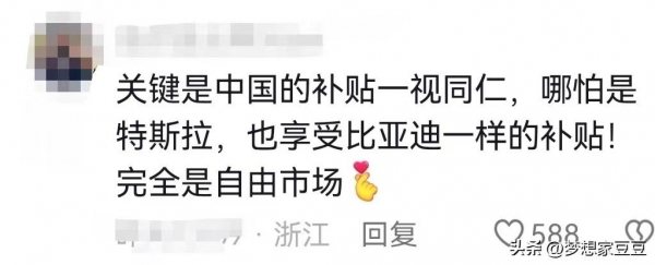 就像这位网友所说的,关键是咱们中国的补贴是一视同仁的,没有哪个搞特殊的,就像美国的特斯拉一样,你也同样可以的搞一些汽车补贴完全是市场的自由,根据大家的需求,大家自由的来选择。
