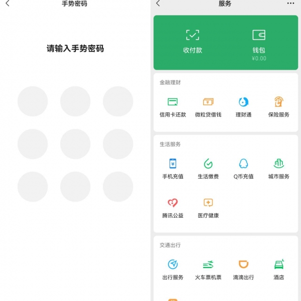 开启了【服务】的密码之后,当我们想要打开钱包、付款码等微信支付相关的界面时,都得准确输入密码才行。