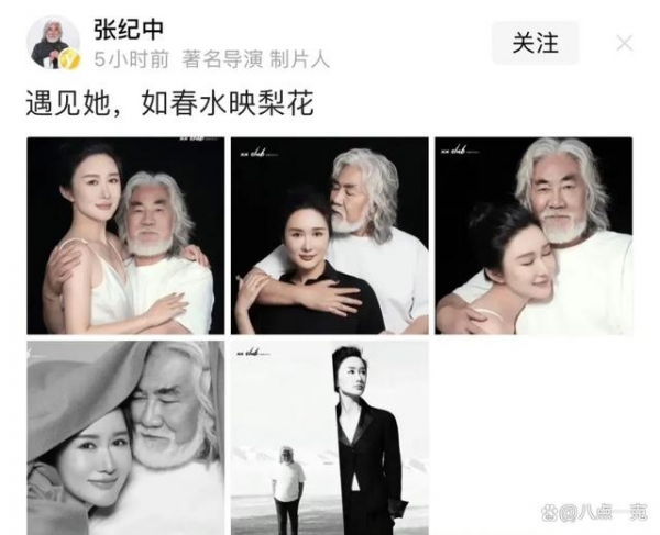 从这组甜蜜写真中,72岁的张纪中虽然头发和胡子已经变得花白,但仍然老当益壮、精神抖擞,在比自己小31岁的娇妻面前,他依旧按耐不住心中的激情,也玩起了年轻人的浪漫主义。