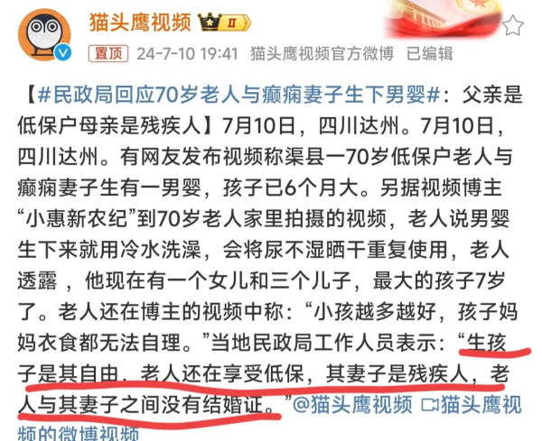 事情闹大后,渠县民政局和卫健局也相继在网上回复有关此事,渠县民政局表示,由于夫妻俩没有领取结婚证,具体是什么原因他们并不清楚,只知道70岁的老人是有低保的,而他的妻子也是残疾人有补助金!