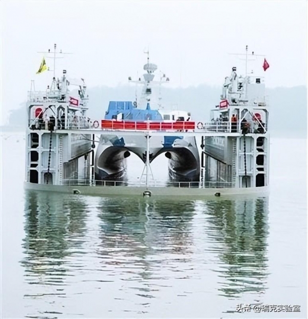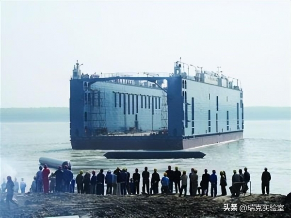 它的构造很特别,有一个巨大的"凹"字形船舱,两侧有墙,前后端敞开,像一艘造型独特的槽形平底船。它可以将船舶的维修或建造在不占用陆地的情况下,放在干燥的环境中进行。