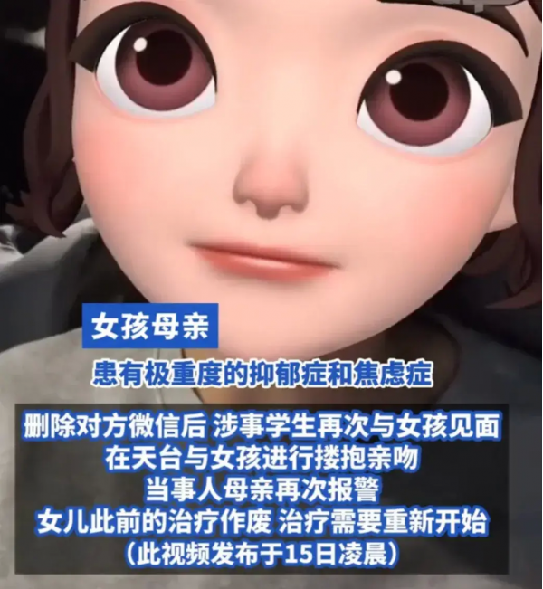 家长透露,他们两人在一次相约中,于城市的一处天台上发生了搂抱和亲吻的行为。这一行为被家长得知后,他立即向警方报告了这一事件,希望通过法律手段制止这种不当行为的发生,并保护自己的女儿免受进一步的伤害。