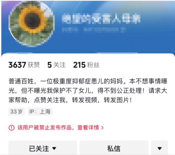 此外,5月15日上午,涉事家长在社交媒体上披露事件后,其账号已被禁止发布任何作品。这一措施可能是平台对敏感内容的自动响应,以防止情况进一步扩散或引起更大的公众不安。此举也引发了对社交媒体管理政策和表达自由之间平衡的进一步讨论。