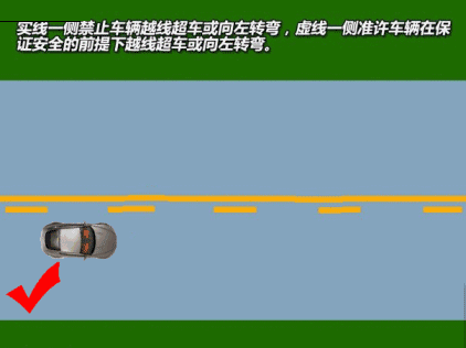 5.道路上的黄色虚实线和双虚线,虚线侧行驶车辆在不影响对向车道的车正常行驶的情况下,允许掉头行驶。实线侧车辆则不允许掉头。