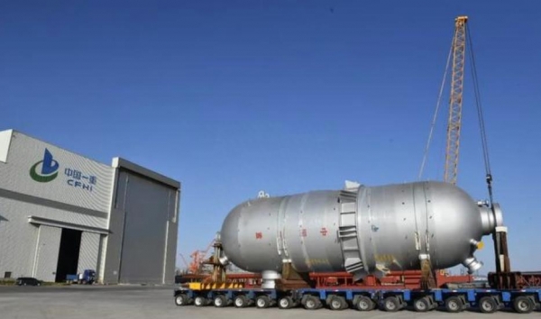 这座加氢裂化反应器由"中国一重"公司制造,这家企业是中国重型机械制造业的标志性产业之一,拥有悠久的历史和卓越的实力。