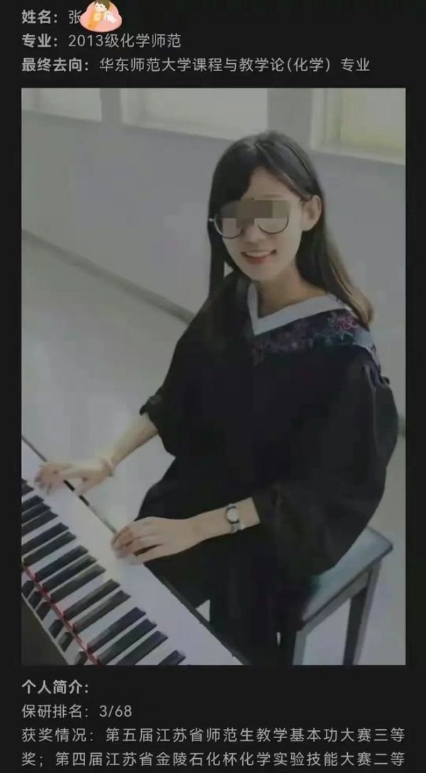 网友们还分享了张某的照片,她看起来年轻,据说不到30岁,拥有硕士学位,在一所上海重点高中担任教职。