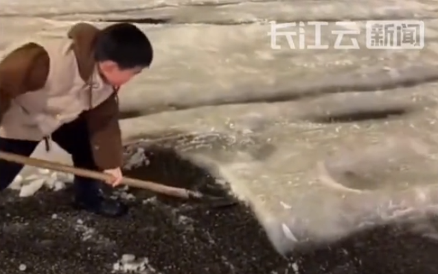 2月26日,据荔枝新闻贰河视频,江苏宿迁受持续冻雨雪天气影响,导致城市道路大面积冰,来往行人骑车经常摔跤,9岁的张少信见到后主动拿起铁锹清理家门前道路上的冰面,从中午两点一直铲到下午六点多,路过的行人纷纷给他坚起大拇指。