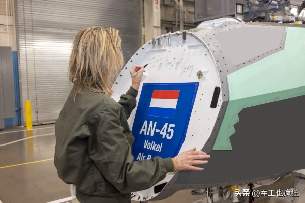 荷兰国防部长卡伊莎·奥隆格伦近期访问了位于德州沃思堡的F-35总装厂,并在荷兰空军第45架F-35A(生产编号AN-45)的前机身隔舱签名留念。该机交付对象沃尔克尔空军基地。