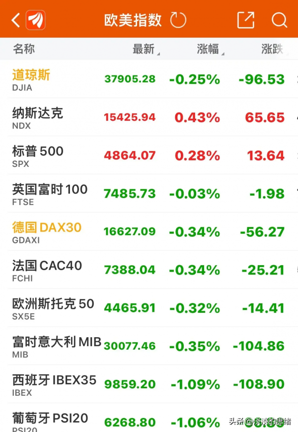 纳斯达克继续创新高,收盘涨0.43%,标普涨同步创新高涨0.29%,道琼斯高开低走跌0.25%;欧洲主要股市小幅回调,英国富时、德国DAX、法国CAC、欧洲斯托克、富时意大利跌0.03%至0.35%不等。