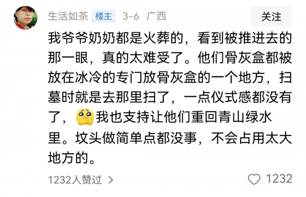 网友感慨∶是的,火葬还是要土埋,老百姓还多出了一笔火葬费。