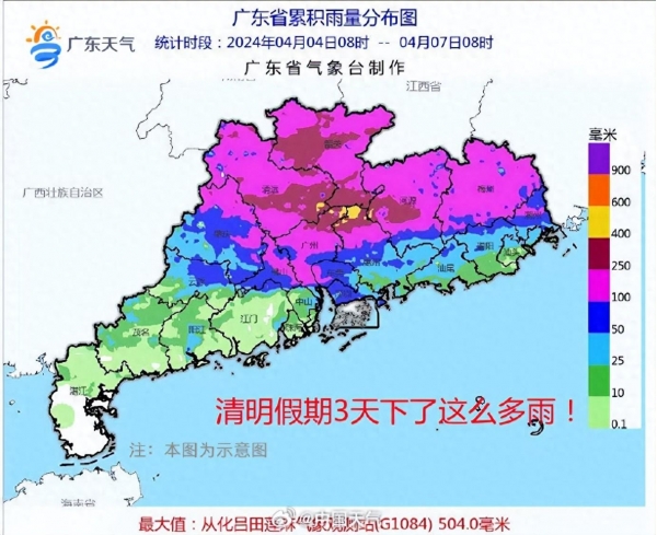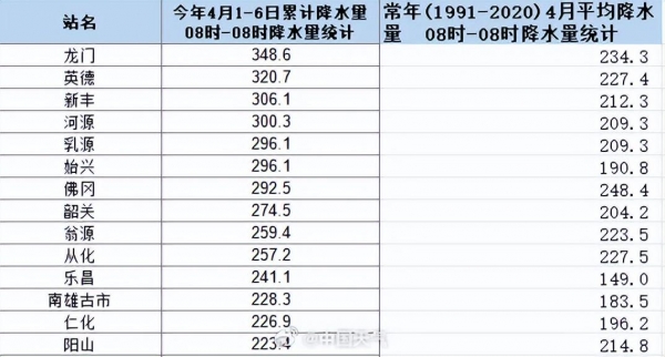 4月7日,据中国天气报道:4月以来,广东的雨就像拧开了开关的自来水--进入"泼水"模式,4月1日8时至7日8时,龙门、英德、新丰、河源、乳源等14个国家级站点累计降水量比常年4月份整月的还多。