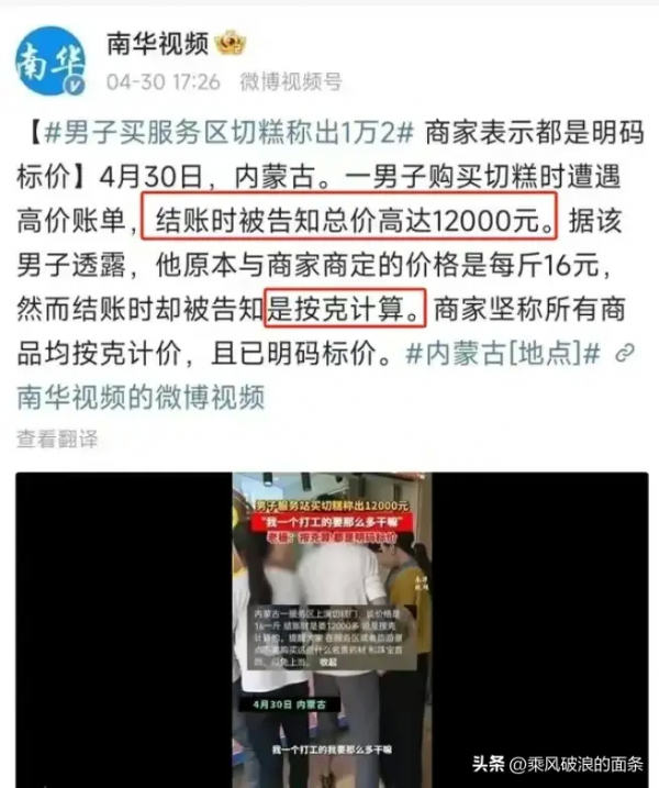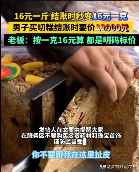 近日"天价切糕"又重现江湖,和往日不同的是,本以为16元可以买一斤,可就在结账时老板却声称16元只是一克,男子切的这一块高达12000元。
