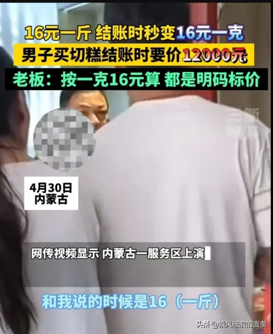 可就在结账时,被老板告知要12000元。男子被吓住了,这么一点要十几万,买车都要不了这么多钱。明明说好的16元一斤,就算是买10斤也不可能是十几万?