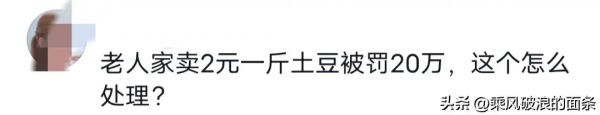 网友突然想起老人卖2块一斤的土豆,却被罚了20万,那这个会罚多少,市场监管局必须给大众一个说法。