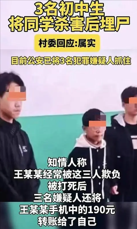 同班同学,霸凌欺负,索要钱财,残忍杀害,毁尸埋尸,很难想象做出这一系列行为的均是未满14周岁的少年。案发后,三人还向搜寻人员提供虚假信息,误导搜寻人员的方向,可谓"心机"满满!