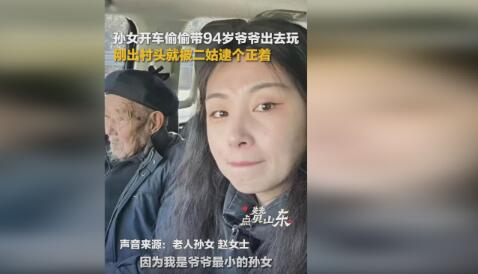 1月25日讯沂水一位94岁的老人太久没出去逛逛,家人也不放心家里的"老宝贝"外出。22日,老人最小的孙女小赵就想偷偷带着爷爷出去玩。不料她帮爷爷穿戴好后,车刚开出村头就被自己的二姑逮个正着,三人面面相觑,这场景又好笑又温暖。好笑在于爷孙二人的"逃跑计划"刚执行就遇到了阻碍;温暖则在于,孙女想带爷爷散心的那颗心是孝顺的,小赵的二姑担心父亲的那颗心也是孝顺的。